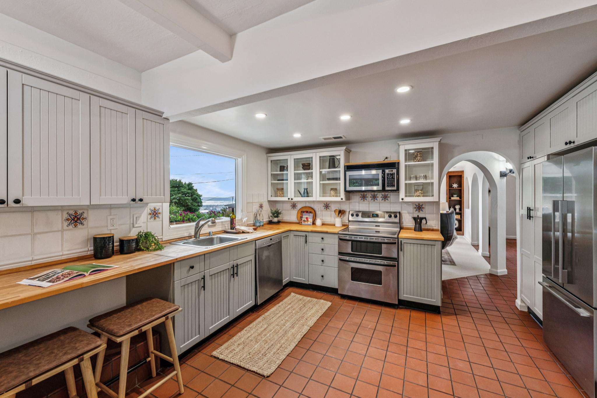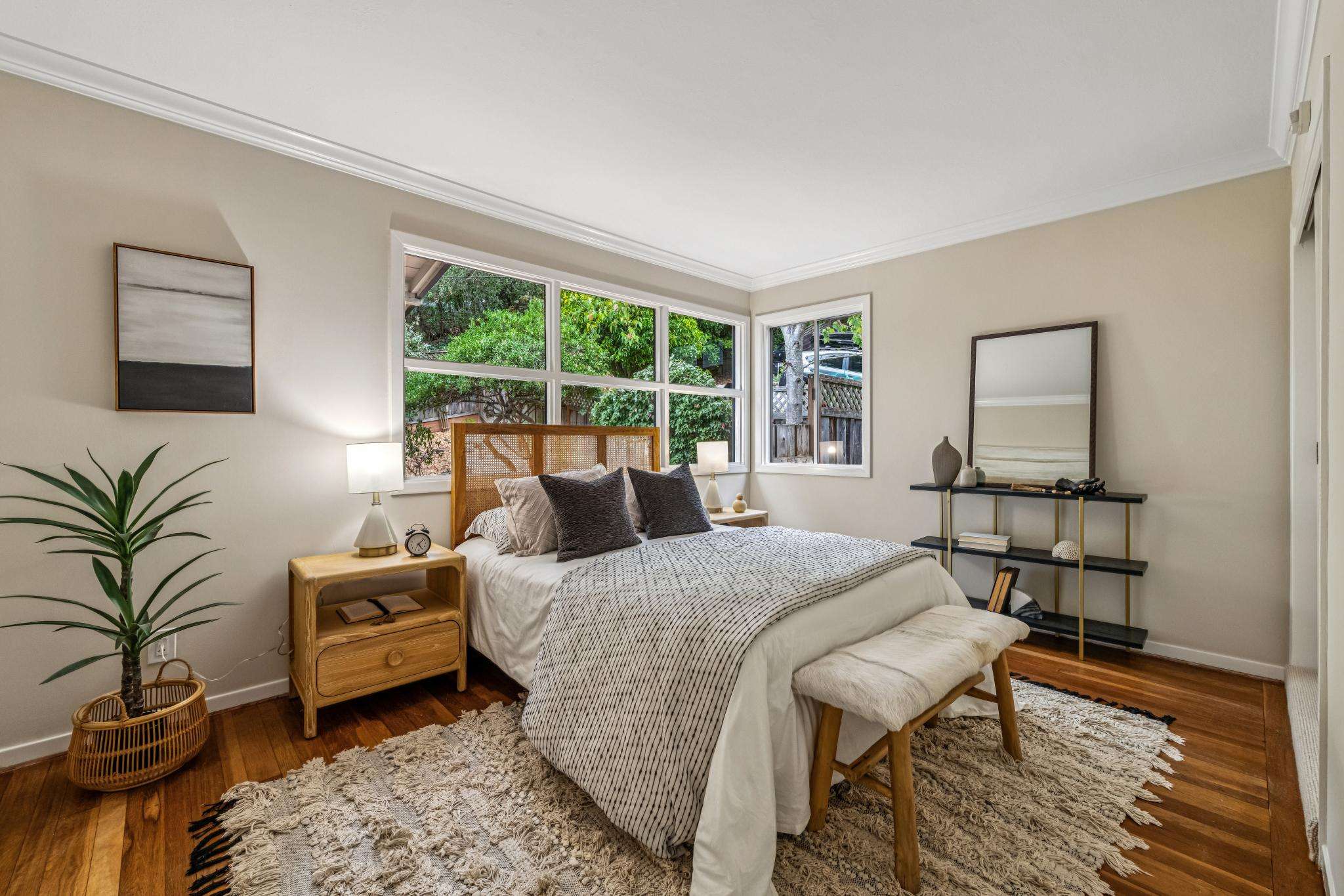 Find your sweet spot away from the everyday bustle in this 4 bedroom, 2 bathroom Upper Broadway Terrace retreat. Located near some of the most beautiful hiking trails in the East Bay, this home is just a 7 minute drive to the Montclair village. Cherished by the same family for over 50 years this house has a warm feeling and great indoor-outdoor flow. The sunny wisteria draped front courtyard is a great place to relax and watch nature unfold in the majestic pine at the edge of the property. Up just a couple stairs, this home offers single level living with two bedrooms and one full bath on the main level. Peeking through the architectural arches in the entry you will notice the light filled living room featuring a dramatic corner window with a peek a boo view of the bay and a gorgeous custom wood burning fireplace. There are two bedrooms and a full bathroom on the main level. Nature lovers will love the eat-in kitchen that opens directly out to a spacious deck with views of the majestic redwood trees and the valley. A large picture window over the kitchen sink has a striking view of Lake Merritt and the Bay. Down a half flight of stairs there is a cozy primary suite with a romantic fireplace. The bathroom has a double vanity and a Carrara marble walk in shower. The lower level opens to a deck, a sweet level patio. This backyard features several incredible redwood trees. Downstairs there is a fourth bedroom or large rumpus room which also opens out to the backyard. There is a small office and separate laundry room off the one car attached garage with has interior access. This home is very close to The Hills and The Montclair Swimming Clubs and several stunning Eastbay Regional Parks and trails. Conveniently located near the 665 line bus stop and just 8 mins to 13 HWY.